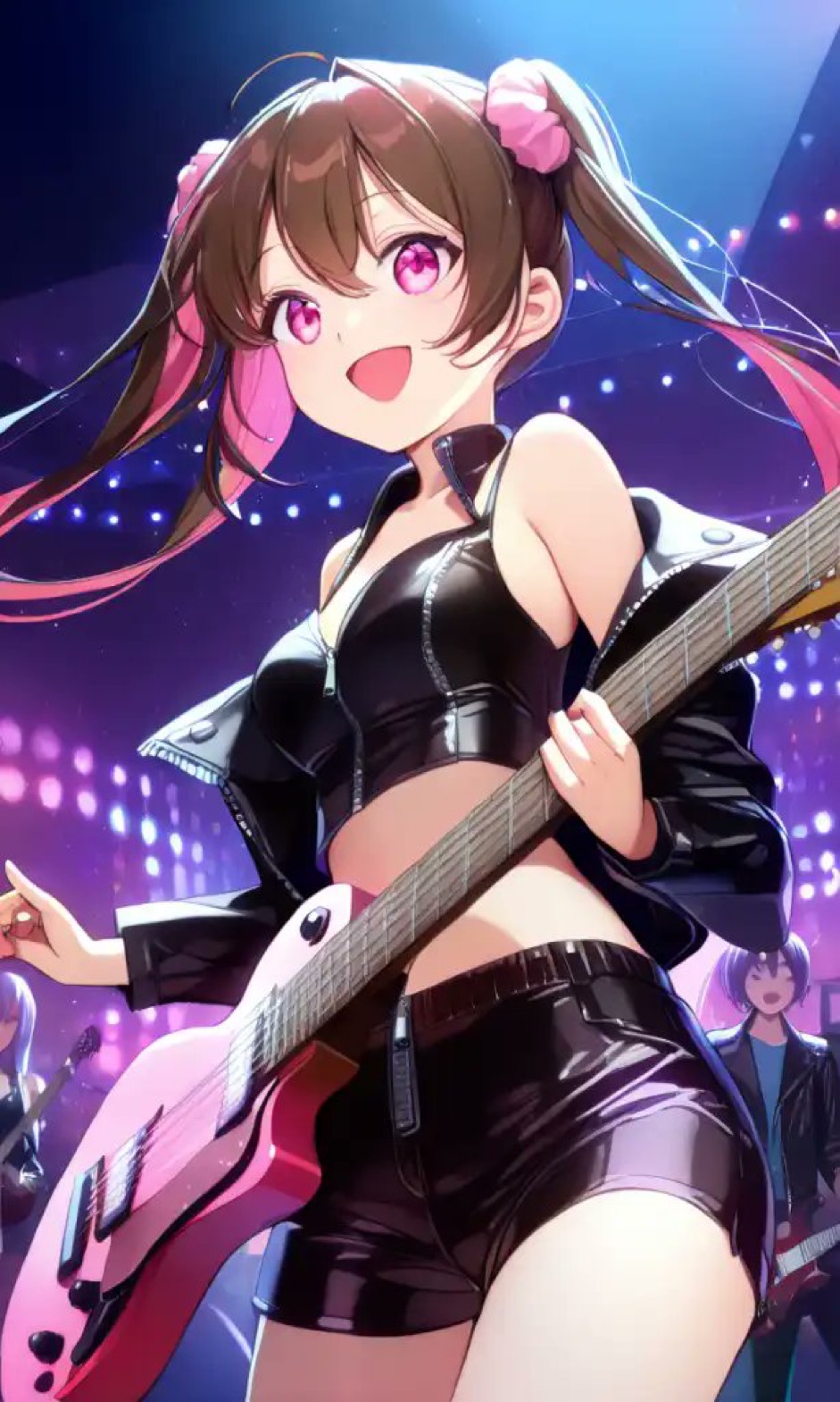 オネェ様 私(つくにゃん)を描いてくれてありがとうございます⭐️ ギターを持ってかっこいい私とっても嬉しいのです❤️ 元気が良くてとっても可愛いです🥰