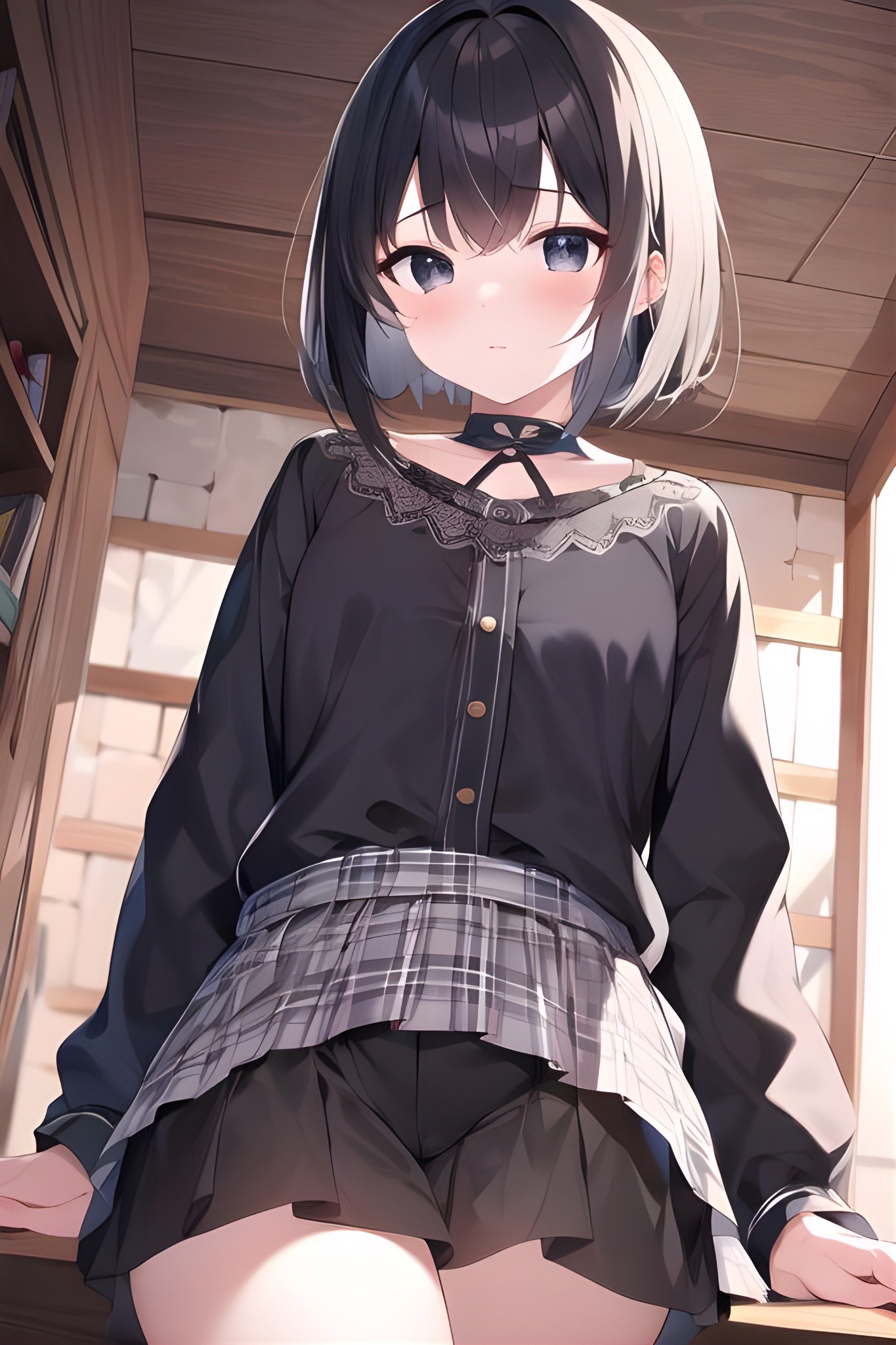 // くーにゃんv5.0.6-L01 ライト版 (((lovely big black eyes)):1.5) , BREAK (black beautiful hair:1.4) , (short bob cut:1.4) ,hair between eyes , (braided hair:1.3), (two-tone hair:1.3) , ahoge , BREAK