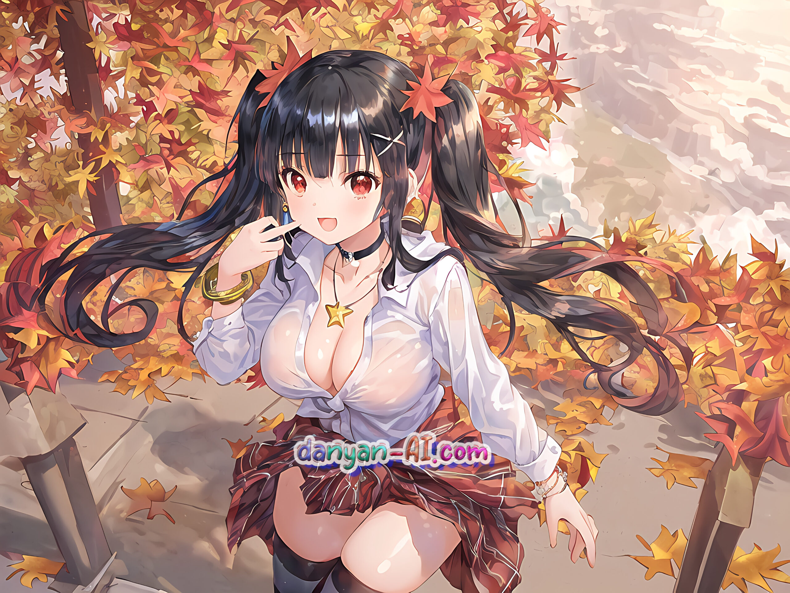 みあにゃん秋ということで紅葉や紅葉を