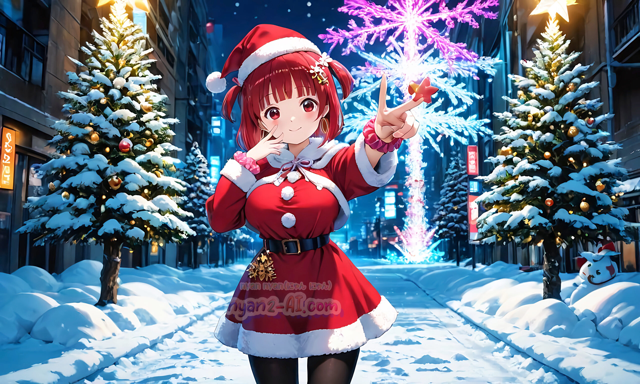 2025年12月壁紙「クリスマスを過ごしているにゃにゃん娘」をテーマに「クリスマス」の綺麗な壁紙を目指してみました。